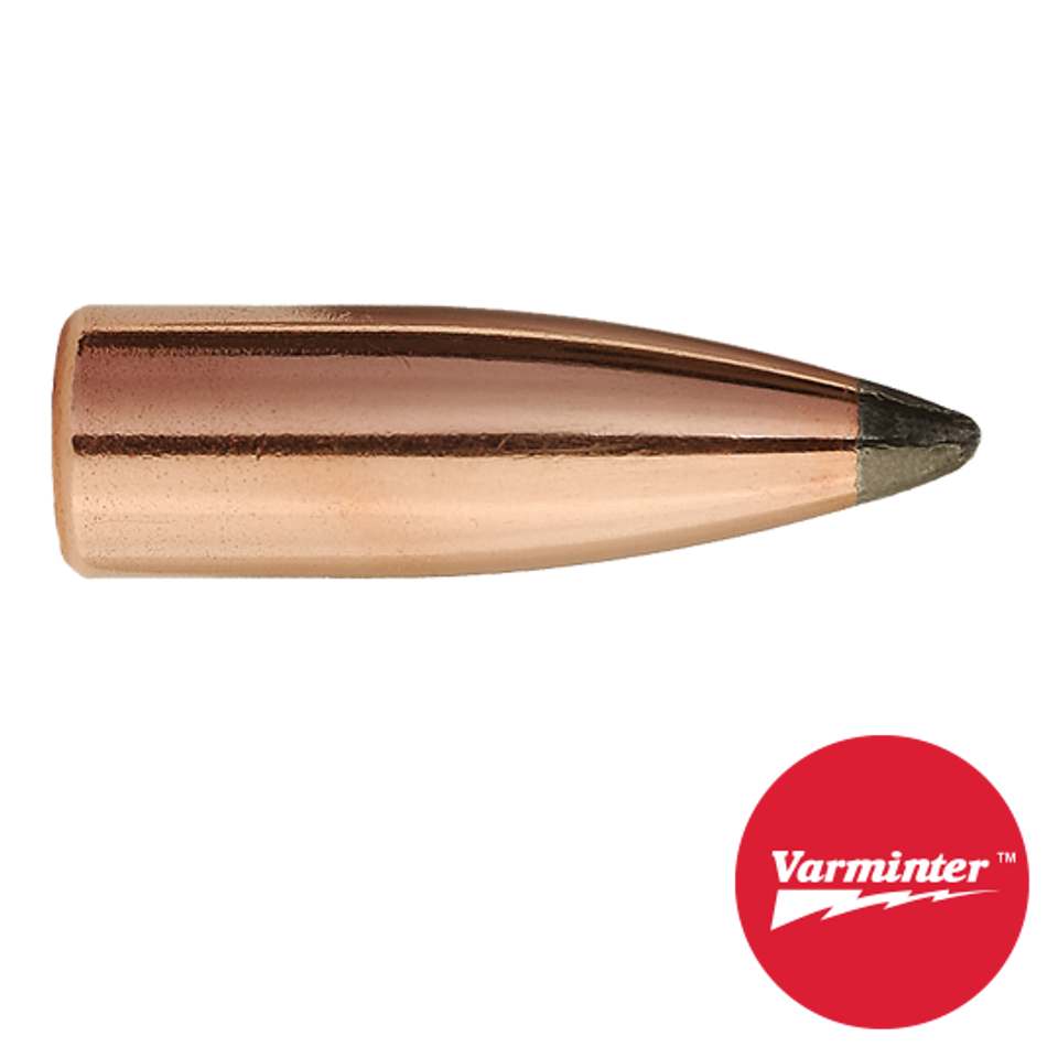 In rifles, this bullet is fully capable of producing 1/4 minute of angle accuracy at velocities that would destroy most other bullets. Each bullet has the Spitzer point shape and a flat base. These bullets are the choice of many accomplished varmint hunters. All feature precisely drawn jackets to assure pinpoint accuracy and reliable expansion, even at maximum ranges. This bullet is slightly "hard" at 222 or 223 Remington velocities, but are especially well suited for velocities from 22-250 and 220 Swift cartridges. For handguns, while capable of producing traditional Sierra accuracy, this bullet must be considered too "hard" at handgun velocities for anything other than target applications. If your handgun will produce velocities greater than 3000 fps at the muzzle, the 45 grain and 50 grain bullets could be used for hunting varmints out to moderate ranges, but will not have explosive expansion.