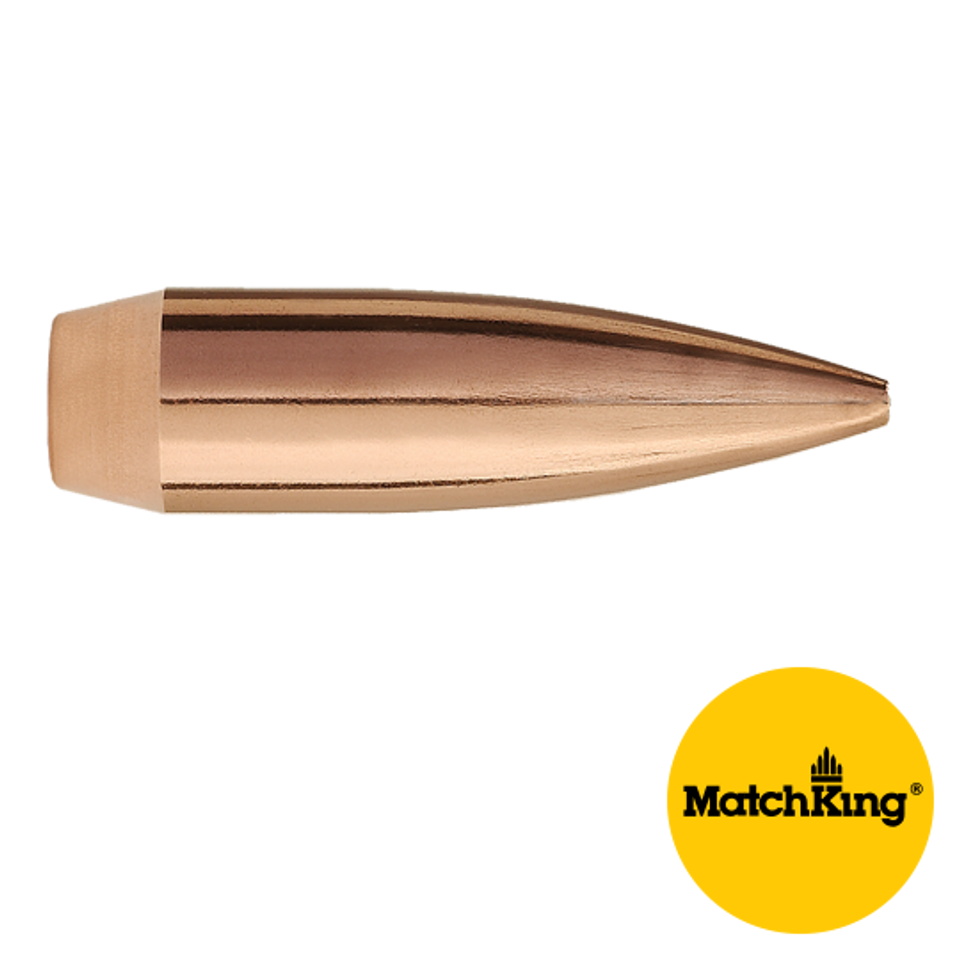 MatchKings are the pride of the Sierra bullet family, unmatched worldwide and truly world class in all respects. Competitive shooters have relied on the consistent accuracy of Sierra’s MatchKings® for decades, resulting in a history of state, national and world records that is the envy of our competitors. Originally designed and developed for 300 meter international matches, the 150 grain #2190 was introduced in the late 1950s. Their first major competitive match was in the 1959 Pan American Games. Sierra MatchKing® bullets have set the standards worldwide for consistent accuracy in handguns as well as rifles. Since the introduction of the high performance Remington XP-100 and similar handguns chambering larger rifle cartridges, all 30 caliber MatchKings have been used in handgun silhouettes and long-range target competitions. Sierra’s famous MatchKing® design assures superb accuracy, flat trajectory, and high momentum delivery with low sensitivity to crosswinds at all ranges. While they are recognized around the world for record-setting accuracy, MatchKing® and Tipped MatchKing® bullets are not recommended for most hunting applications. Although MatchKing® and Tipped MatchKing® bullets are commonly used for varmint hunting, their design will not provide the same reliable explosive expansion at equivalent velocities in varmints compared to their lightly jacketed Hornet, Blitz or Varminter counterparts.