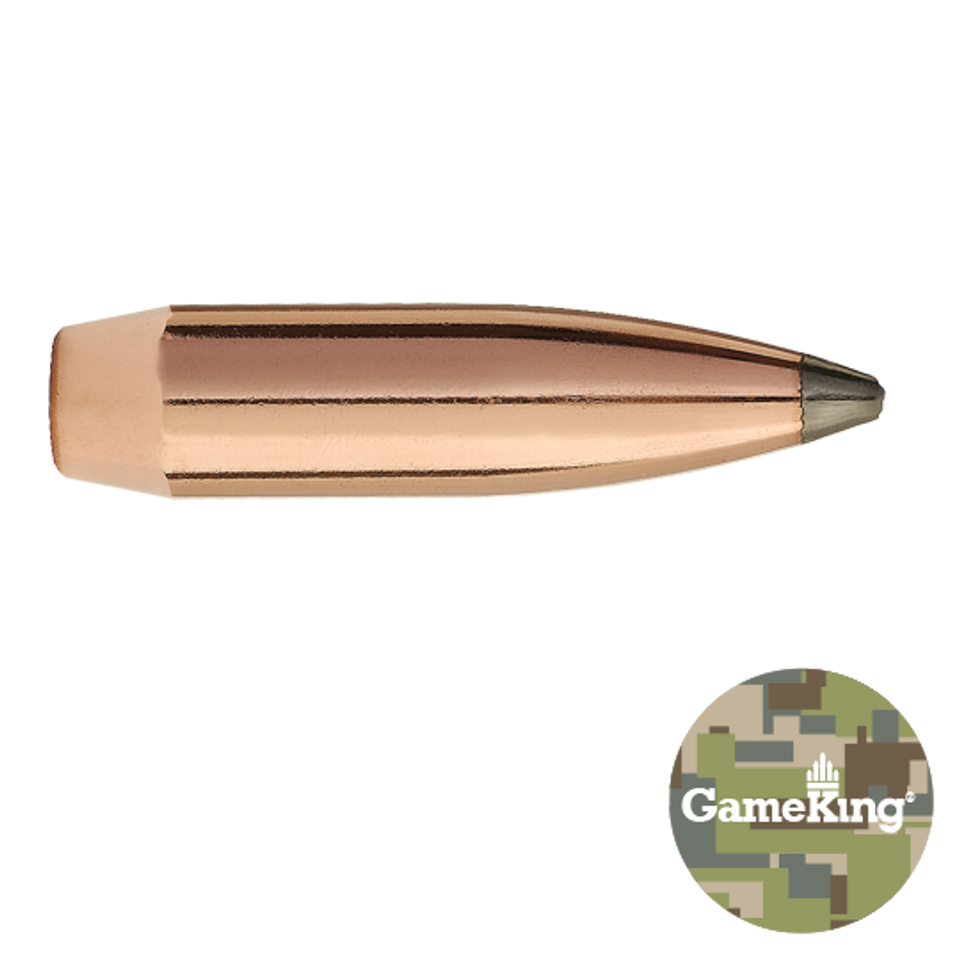 These bullets have been designed for the 338 Winchester Magnum cartridge. This 250 grain #2600 bullet also is ideal for the 340 Weatherby Magnum. Controlled, but reliable expansion and deep penetration are assured by an extra heavy double-tapered jacket in the 250 grain #2600 bullet, and hard core. The Sierra Spitzer Boat Tail shape assures a flat trajectory, minimum wind sensitivity and precise accuracy at long range for both bullets. Hunting rifles have shown extraordinary accuracy with this bullet in spite of the robust recoil of maximum loads. The 250 grain #2600 bullet has proven to be one of the finest 338 caliber hunting bullets in the world for heavy game. Whether the game is western elk or mule deer, Alaskan moose or bears, or African plains game, there simply is no better bullet for a magnum rifle in 338 caliber.