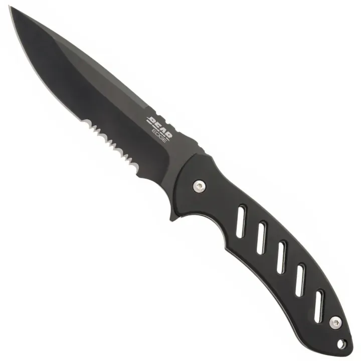 Bear Edge Brisk 1.0 9 3/4" Black Fixed Stainless Steel Blade Knife with Ballistic Sheath - BAS-61517
