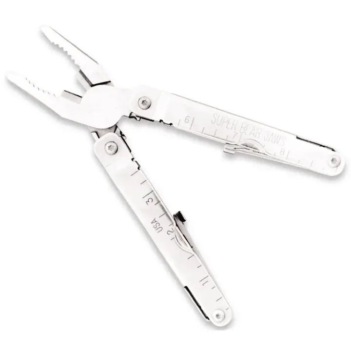 The Bear & Son 156L is a 4-1/2 Super Bear Jaws™ that is a larger version of everything you would need from a multi-tool. This everyday carry 19 function multi-tool is made with 100% Stainless Steel construction and all components will lock into place with the multi-tool lock. The Super Bear Jaws™ features a stainless-steel Clip Point blade, Wire Cutters, Can Opener, Bottle Opener, 2 in 1 Pliers, Phillips Screwdriver, Small Standard Screwdriver, Medium Standard Screwdriver, Large Standard Screwdriver, Metric Scale, Standard Scale, 2 in File, Lanyard Tab, Leather Awl, Wood Saw, and a Tool Lock. The Bear & Son 156L comes with a Bear MGC ballistic sheath for belt carry. Model 156L is proudly made in the USA.