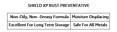 Unlike typical rust preventatives that leave a messy, wet, oily film behind, Shield XP penetrates deep into the metals pores displacing moisture and neutralizing corrosive byproducts then seals the surface from its environment with a semi-dry film that will not attract sand, dust, dirt or debris.