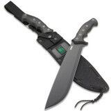 The Chanceinhell™ is a beefy fixed blade survival machete designed by award-winning custom knife-maker Ken Onion of Kaneohe, who designed this big survival machete to be tough, strong and work like an ox. The thick, carbon steel blade has a black powder coat that is durable in extreme environments. This knife is built for hard use and it's easy to sharpen after you've put the finishing touches on your handmade hotel in the woods.