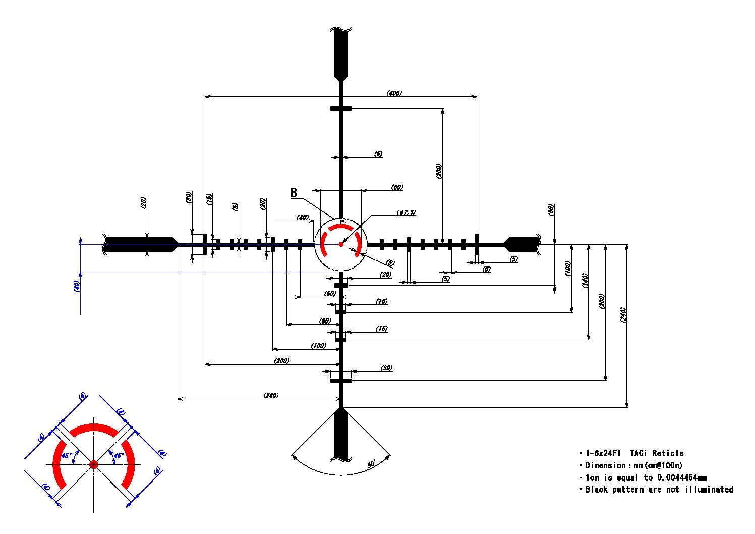 | cm travel value per click at 100m | 1 Click = x/100m | 1 mrad |