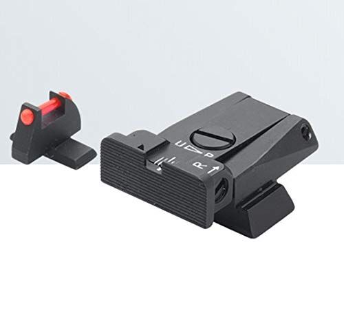 This is a fully adjustable, black serrated sight set with red fiber optic front sight, for the H&K 40 UPS pistol style pistols. This sight is in "low profile" and is made to work with the front sight in the package. Additional keys are included in the package. These LPA sights are made in Italy and are of high quality. The rear sight is fully adjustable for elevation and windage, allowing you to adjust it to correct your gun's point of impact as needed. The scope set is made of steel construction, not plastic. These sights use the original dovetails and grooves in the pistol slide. These are the best sights on the market today to improve the sighting of your pistols. LPA part number SPR49HK7F.