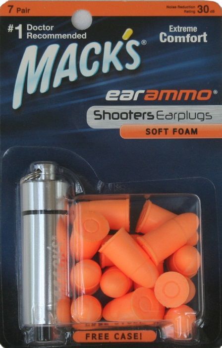 Mack's Ear Ammo Foam Earplugs are shaped like miniature cartridges and built for shooters who need serious hearing protection. Made from super low-pressure, fully-skinned foam, they seal gently in the ear canal while still delivering a high Noise Reduction Rating. The 7-pair pack includes a handy travel case so you can keep clean spares in your range bag or pocket.