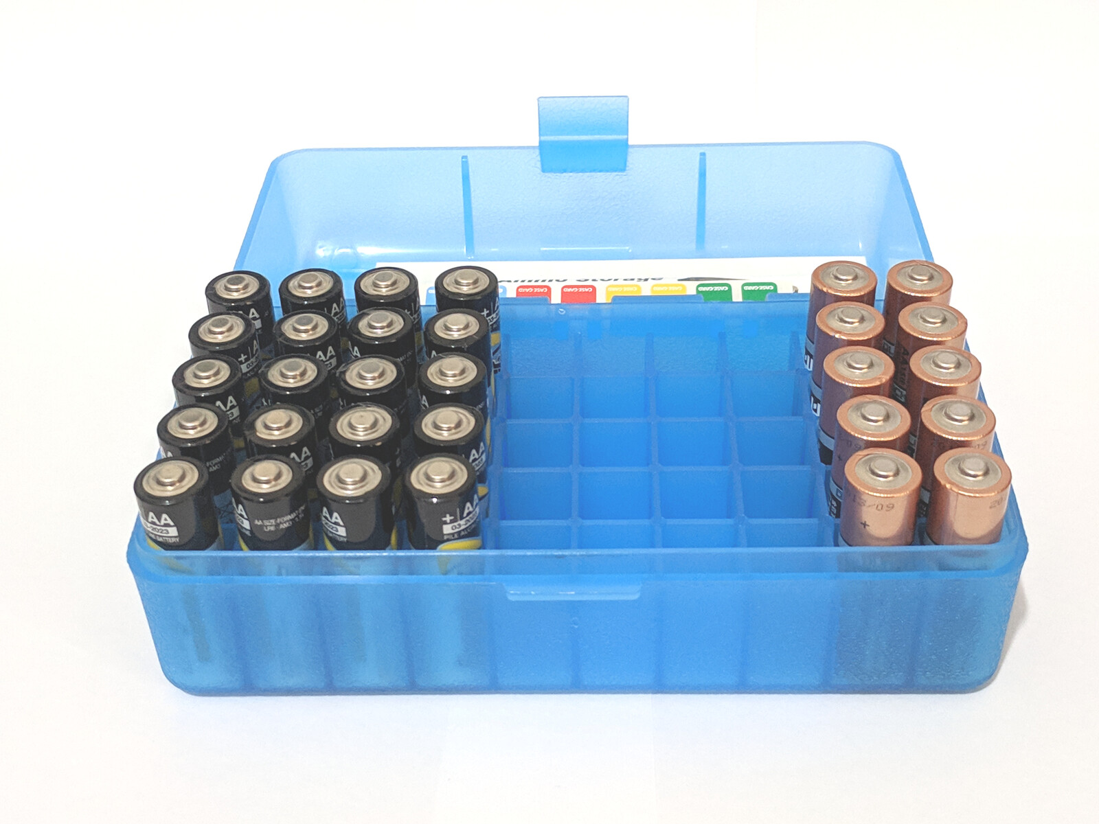 Want to hold up to 50 AA Batteries conveniently? These flip top ammo boxes are available to accommodate Battery storage. They have an easy to grip, scuff-resistant textured surface and are stackable. The Snap-Lok latch and full length mechanical hinge are guaranteed for 25 years. Load label included.