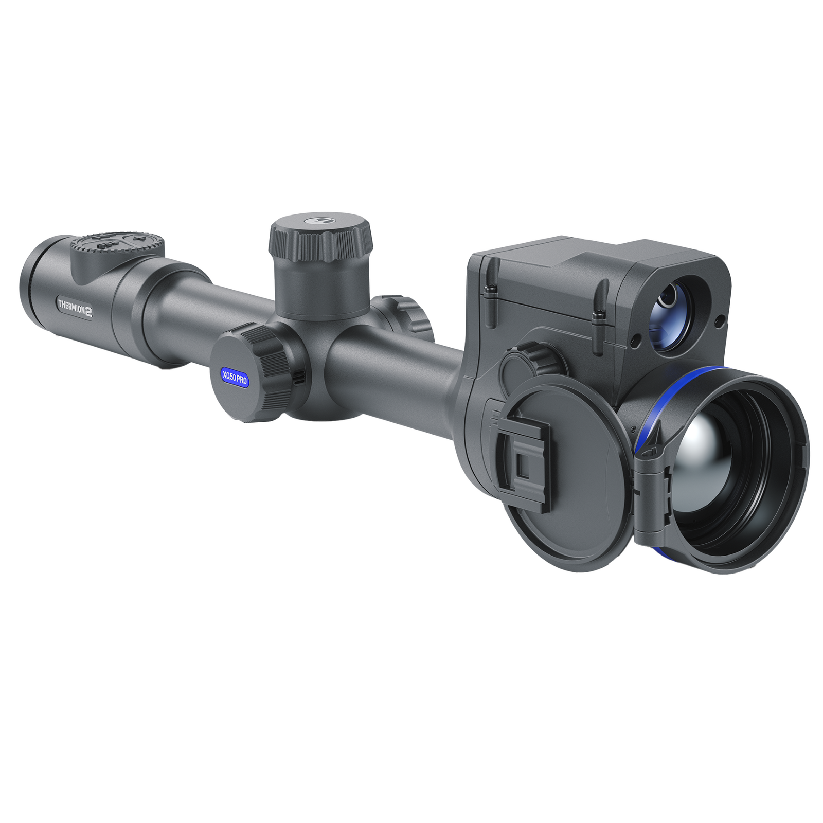 Featuring a high-definition thermal sensor with 384x288 pixels @ 17 µm, the Thermion 2 LRF XQ50 Pro delivers sharp, richly contrasted thermal imaging for enhanced identification of animals and terrain details, even in low thermal contrast conditions. Its unprecedented thermal sensor sensitivity with NETD <25mK ensures perfect detail recognition, even in challenging weather conditions like rain, fog, or cold mornings.The Thermion 2 LRF XQ50 Pro boasts a fast aperture lens (F50/1.0), optimizing detection efficiency and providing the best quality, most detailed imagery, even in adverse weather conditions. With a long detection range of up to 1800 meters and up to 10 hours of battery life on a single charge, hunters can rely on this riflescope for extended periods of active use.