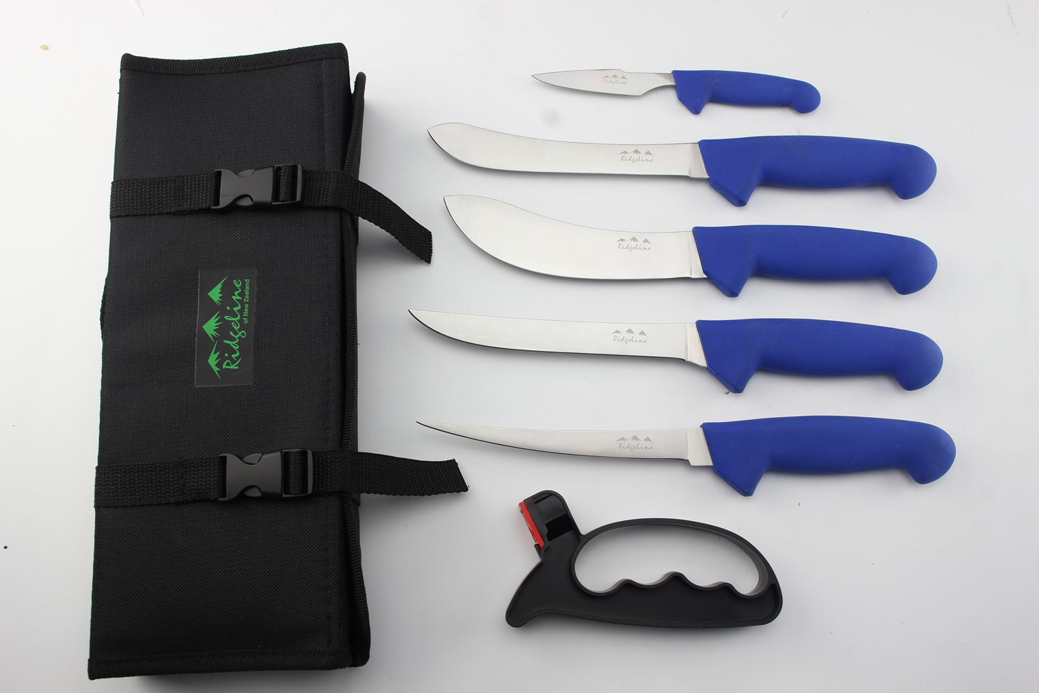 • 5 knives inc. 2x filleting knives, skinner knife, butchers knife and paring knife