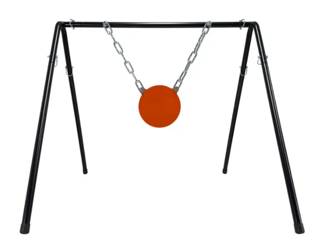 Ridgetek 8" x 1/2" AR500 Steel Gong Target with Stand is an 8-inch diameter, ½-inch thick gong cut from abrasion-resistant AR500 steel that delivers a loud, reactive “ping” and long life under repeated impacts. The kit includes a powder-coated gong with pre-drilled hanger holes and a powder-coated stand/frame for quick, tool-free assembly and easy transport. When used safely it’s suitable for pistol use and - at manufacturer-recommended distances - for many rifle calibres; always follow the supplier’s minimum distance guidance, wear eye and ear protection, and never use armour-piercing or steel-core rounds.