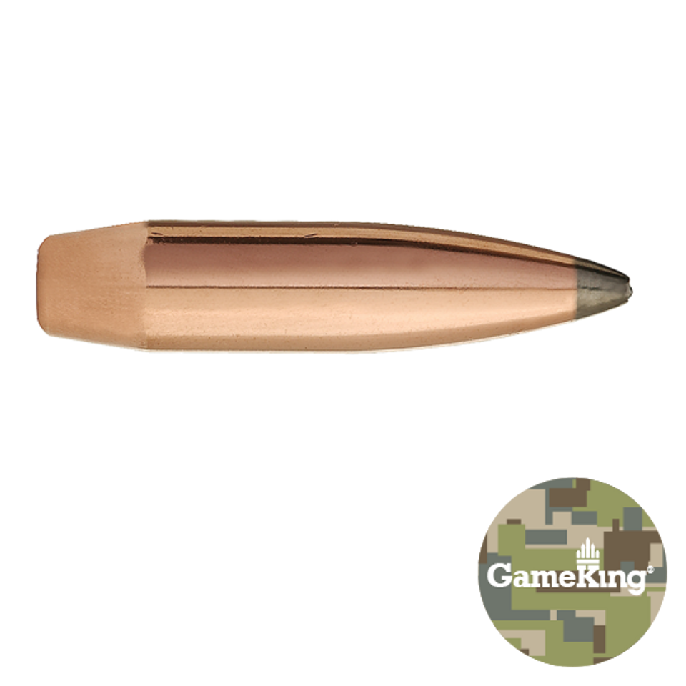For rifles in 30 caliber, these bullets are designed for medium- to long-range hunting with cartridges having medium to large case capacities for powder. These bullets often display match grade accuracy from accurate hunting rifles. The famous Sierra Spitzer Boat Tail shape assures flat trajectory, excellent resistance to crosswinds and vertical winds, and maximum energy delivery to the target. Good penetration and expansion are characteristic of these bullets even at the reduced impact velocities at long range. With the weight range available, at least one of these bullets will prove ideal for almost any 30 caliber cartridge. The 200 grain #2165 have no restrictions for large game but are best when fired at maximum hunting velocities. The 200 grain #2165 has the highest ballistic coefficient of all 30 caliber hunting bullets for unmatched long-range performance. The 200 grain #2165 bullets are recommended for the various 30 caliber magnum cartridges. In handguns chambering 30 caliber cartridges, prior to the introduction of the Remington Model XP-100 (and similar handgun designs) utilizing larger rifle cartridges, the usefulness of these bullets was limited. Now, these bullets have a very definite niche as superbly accurate hunting bullets. Previously considered "too hard" for expansion, they perform well at the 2500 fps muzzle velocities achievable in the 308 Winchester and larger cartridges. Ease of loading and precise concentricity contributes to their excellent accuracy. Sierra's Spitzer Boat Tail design assures flat trajectory and high energy delivery downrange with low sensitivity to crosswinds and vertical winds. These bullets are suitable for varmints through large game at all ranges a prudent handgunner would normally attempt. The 200 grain #2165 bullets are favorites of the silhouette shooters and long-range competitors, but are too "hard" for most hunting applications.