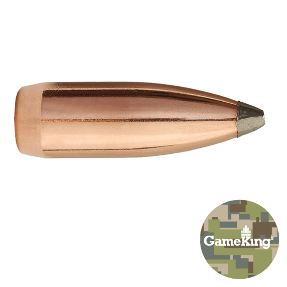 For rifles, when Remington standardized the popular .35 Whelen wildcat cartridge, Sierra designed the 225 grain #2850 Spitzer Boat Tail bullet for the 35 Whelen and similar cartridges. This bullet has a heavy, double-tapered jacket drawn to very tight tolerances and a special alloy core for deep penetration and good expansion on heavy game. It also has the classic Sierra SBT shape for exceptional ballistic efficiency among 35 caliber bullets. This bullet delivers incredible accuracy and retains velocity and energy exceptionally well downrange. The flat trajectory extends the useful range of all appropriate 35 caliber cartridges and delivers smashing power even at long range. Although not suited for the 35 Remington cartridge, it is well matched to the more potent 358 Winchester and 350 Remington Magnum cartridges, as well as the 35 Whelen. In any of these cartridges, it is appropriate for all North American big game. In handguns, while the 225 grain #2850 Spitzer Boat Tail GameKing bullet is not recommended for hunting due to its extreme toughness, it is still useful to the handgunner. Those hearty silhouette shooters who can't get away from a favorite 357 Herrett or 35 Remington have a streamlined, high ballistic coefficient, low crosswind sensitivity bullet to use at 200 meters. This bullet can be fired at 1700 fps from a T/C Contender with a 10 inch barrel in 357 Herrett or 35 Remington, and it won't leave a ram standing. Also, it is capable of half minute-of-angle accuracy.