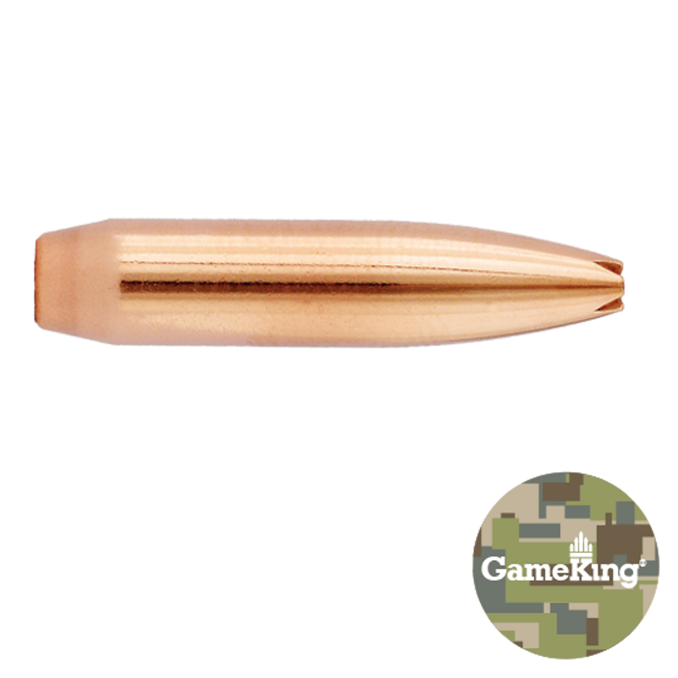 Customers have been asking us for years to make a 6.5 mm and 7 mm version of our very popular 30 caliber 165 grain HPBT GameKing and we are happy to say we have fulfilled that request. Just like their 30 caliber cousin, these bullets will be ideal for midsized game with standard and magnum calibers. The thicker jacket promotes deep penetration while the skives at the meplat provide reliable expansion.