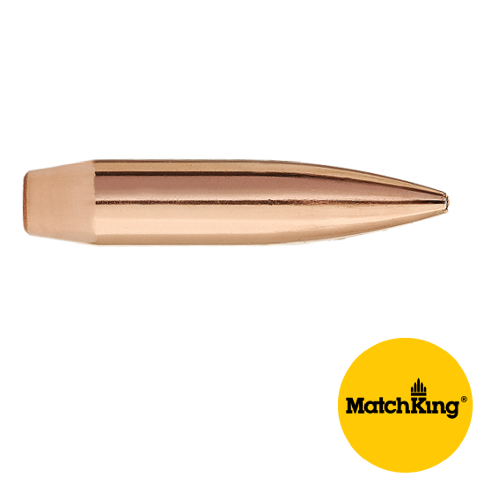 MatchKings® are the pride of the Sierra bullet family, unmatched worldwide and truly world class in all respects. Competitive shooters have relied on the consistent accuracy of Sierra’s MatchKings® for decades, resulting in a history of state, national and world records that is the envy of our competitors. Sierra MatchKing® bullets have set the standards worldwide for consistent accuracy in handguns as well as rifles. Since the introduction of the high performance Remington XP-100 and similar handguns chambering larger rifle cartridges, all 30 caliber MatchKings® have been used in handgun silhouettes and long-range target competitions. Sierra’s famous MatchKing® design assures superb accuracy, flat trajectory, and high momentum delivery with low sensitivity to crosswinds at all ranges. While they are recognized around the world for record-setting accuracy, MatchKing® and Tipped MatchKing® bullets are not recommended for most hunting applications. Although MatchKing® and Tipped MatchKing® bullets are commonly used for varmint hunting, their design will not provide the same reliable explosive expansion at equivalent velocities in varmints compared to their lightly jacketed Hornet, Blitz or Varminter counterparts. This bullet (2240) requires a barrel twist rate of 1×10” or faster.