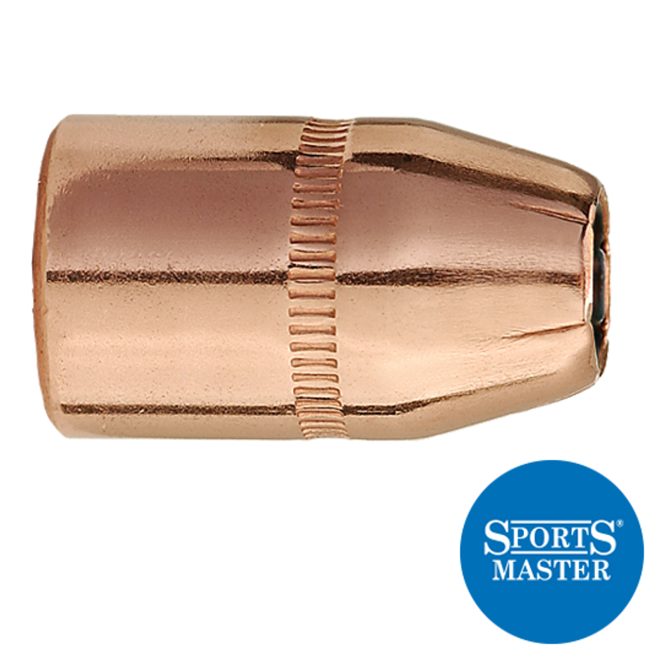 These Jacketed Hollow Point SportsMaster bullets are designed for high velocity and rapid expansion, and are suitable for all 38/357 cartridges used in handguns or rifles. Power Jacket skiving assures even upset, and Sierra's unique cavity ensures quick expansion. Tough enough to give good penetration, these bullets are a fitting choice for varmints through medium-sized game in 38 Special and 357 Magnum guns by matching bullet weight to the quarry. The cannelure is located for proper crimping for most 38/357 revolvers and rifles.