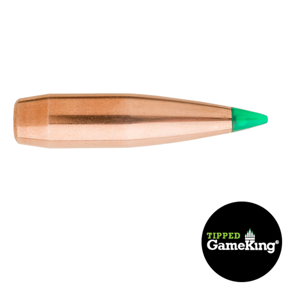 Tipped GameKing (TGK) Bullets: These are hunting bullets with the perfect combination of Sierra's legendary match accuracy coupled with deadly penetration. Sierra re-engineered their legendary MatchKing bullet into a hollow point design for quick expansion and fitted it with a transparent polymer green tip for ballistic uniformity. Inside, the TGK features a unique construction that utilizes a special lead alloy surrounded by a tough copper jacket that delivers excellent penetration and expansion at a variety of ranges.