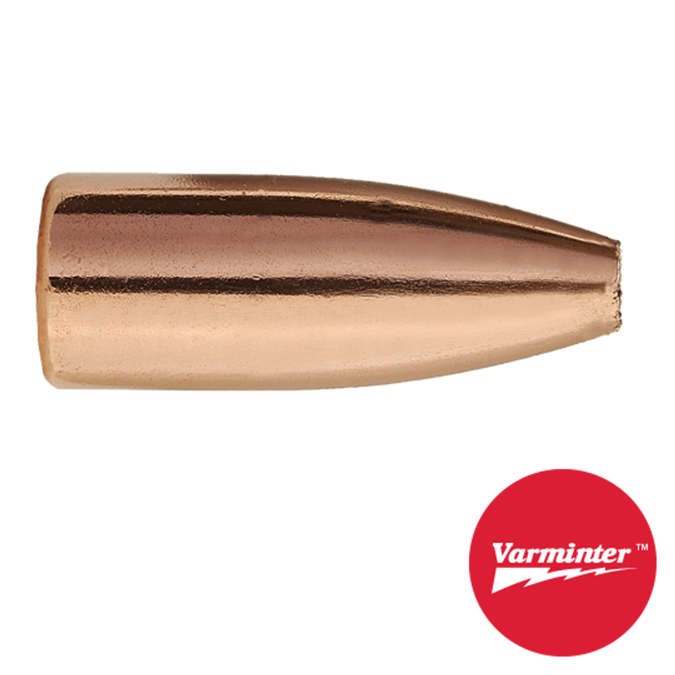 There is only one 30 caliber Varminter rifle bullet in Sierra's line. This 110 grain #2110 Hollow Point also is the largest caliber Varminter bullet in Sierra's line. It will withstand exceptionally high velocities and can be loaded in all 30 caliber cartridges, including magnums. It is extremely accurate and has been used by some Hunter Benchrest competitors. It offers explosive expansion on varmints and small game at velocities achievable with the full range of 30 caliber cartridges. This is an ideal bullet to choose for off-season practice on varmints with any 30 caliber hunting rifle. In handguns, Sierra's Hollow Point construction in the 110 grain #2110 bullet guarantees expansion, even at moderate velocity levels. Expansion will not be explosive but is acceptable for varmints and small game. Capable of extraordinary accuracy, this is an excellent light bullet for most 30 caliber single shot pistols. The #2110 was introduced in 1958.