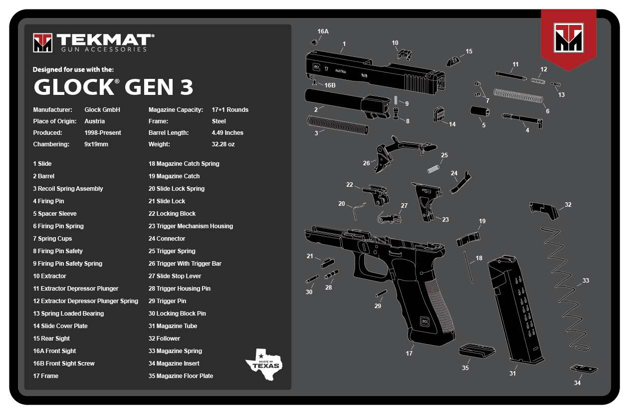 TekMat Glock Gen 3 Gun Cleaning Mat - TEK-R17-GLOCK-G3