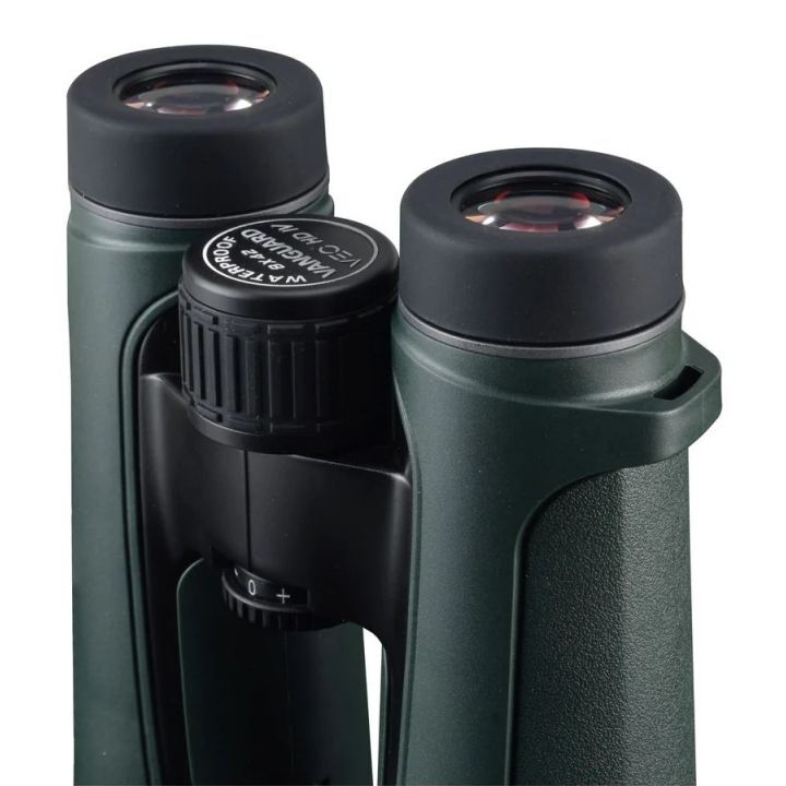 The HD IV 8420 (8x42) binoculars from VANGUARD are the next evolutionary stage in the popular VEO optical series. These high-quality binoculars offer all the features you expect from a high-priced set - but without the four-digit price. Nature lovers, adventurers, travelers, sports fans, bird watchers and outdoor athletes all agree that VEO optics deliver top performance without breaking your budget. VEO HD IV binoculars feature extra-low dispersion (ED) Hoya glass and phase-corrected SK-15 prisms that virtually eliminate chromatic aberration and produce true color fidelity images across the entire field of view with improved contrast. The glass and prisms are complemented by an anti-reflective and fully multi-coated optical system that improves light transmission for bright and clear images with greater performance in low light. These binoculars are user-friendly and comfortable. A large, ergonomic center focus knob makes it easy to adjust the VEO HD binoculars. In addition, the three-level adjustable eyecups ensure that you can adjust the eye relief for viewing with or without glasses. VANGUARD VEO HD binoculars are waterproof and anti-fog. In addition, the scratch-resistant lenses are coated with a coating that prevents water drops from sticking.